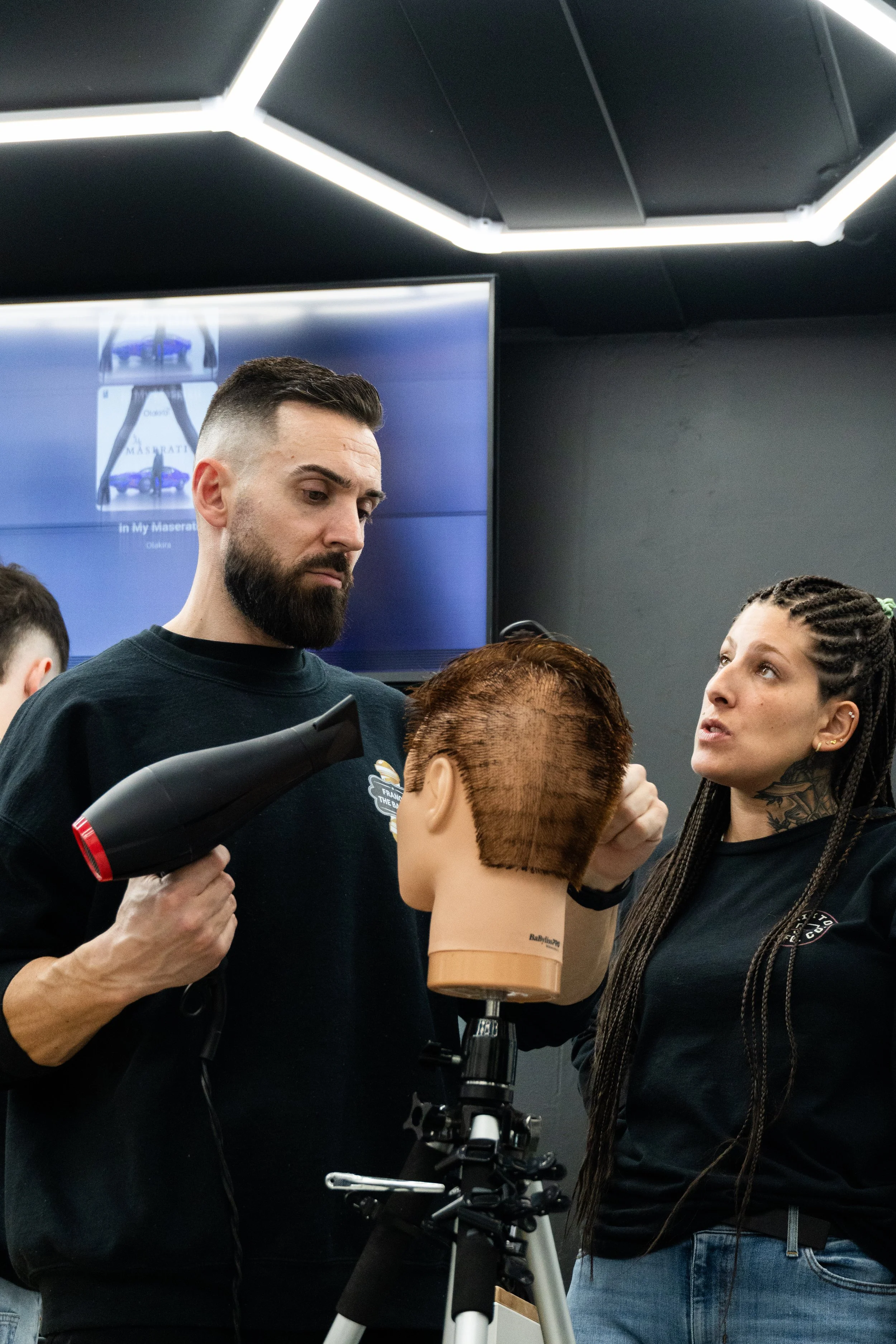 Une formation parfaite pour observer, apprendre et comprendre les techniques professionnelles utilisées au salon. Pendant cette session, vous assistez à des démonstrations complètes réalisées par nos formateurs : coupes modernes, fades propres, tailles de barbe, finitions avancées et secrets de précision.